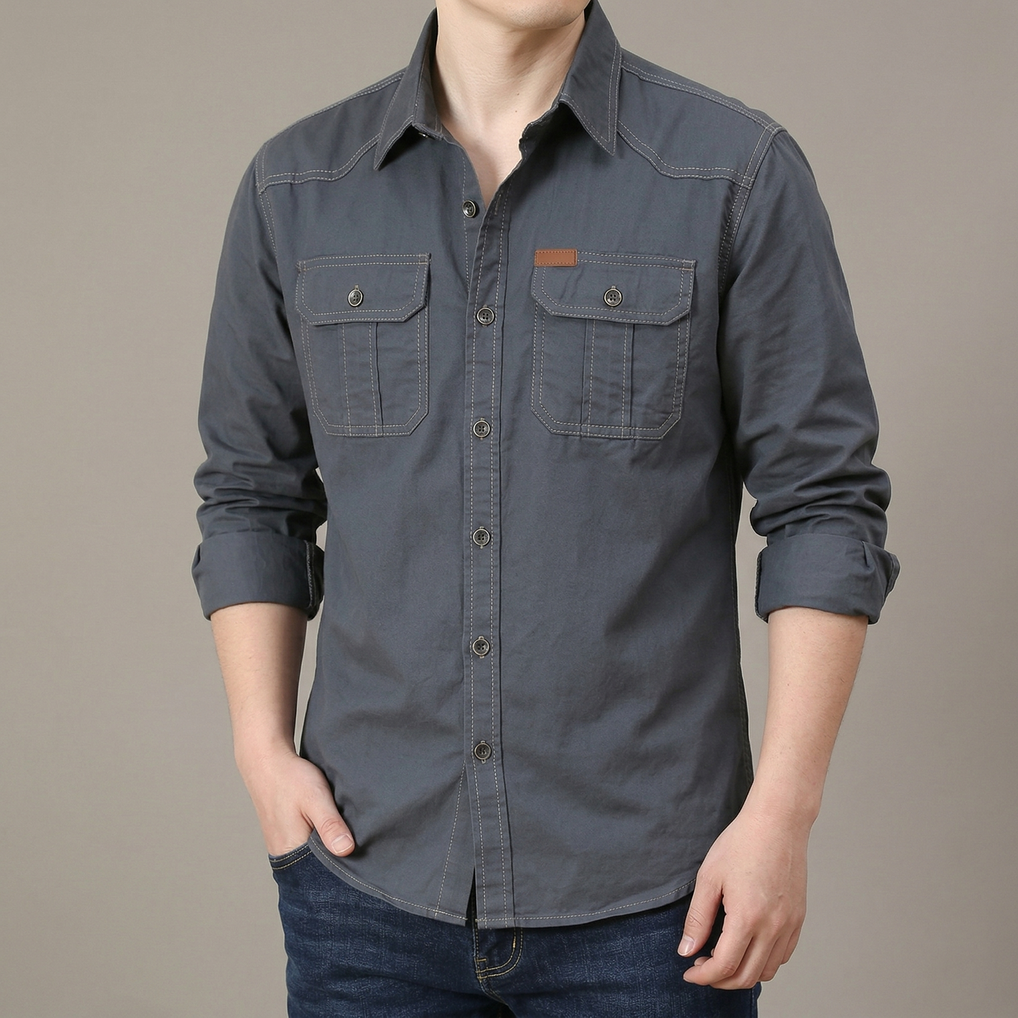 Full sleeves double pocket panel Shirt